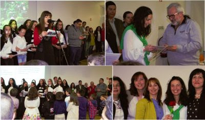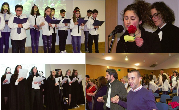 Com um auditório repleto de alunos e pais, contámos com a presença da presidente da AJUDARIS, Dra Rosa Vilas Boas, de representantes de várias entidades do Agrupamento e da Comunidade Local, numa sessão onde os alunos brilharam, apresentando várias atividades (pensamentos filsóficos dos alunos do 1.º ciclo, animação das histórias publicadas no livro, declamação de poemas, oferta de uma caixa de afetos com cravos mensageiros à presidente da Ajudaris) que alertavam para os valores, afetos e nos sensibilizavam para as questões solidárias.