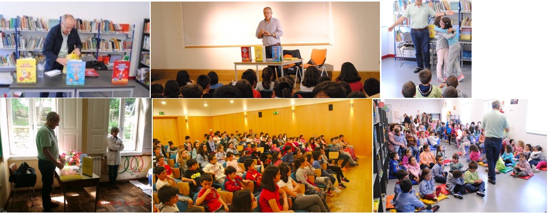 O escritor animou as sessões com uma história de um dos seus livros “Os cães também amam”, que deliciou os alunos com “uma história de amor, entre o Pompeu, um cão de belo porte, imponente…” e a “Violeta, uma linda cadela de olhos ternos e meigos com um bonito tótó…”, envolvendo nesta animação os docentes presentes nas sessões.